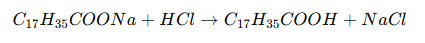 - Chất tham gia: Muối natri của axit stearic (xà phòng) và dung dịch axit clohiđric.