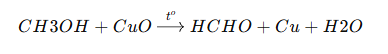 Khi cho metanol (CH3OH) tác dụng với đồng(II) oxit (CuO) và đun nóng, xảy ra phản ứng: